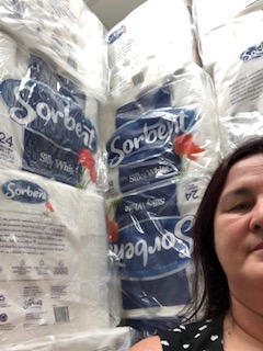 Peta couldn’t help but take this photo. This is the stockpile of toilet paper at her clinic today.