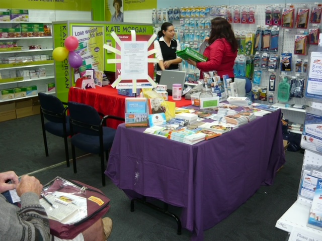 Diabetes Week at Terry White Chemmart, Acacia Ridge sponsored by Accu-Chek. Pictured is Peta with local Accuchek representative Jennifer and the wonderful display they put together. At this event we offered blood glucose meter downloads alongside ad hoc discussions about diabetes.