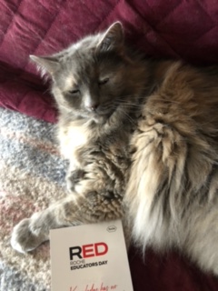 Enjoying a web-based education day with Wanda, Peta’s Number One office assistant.